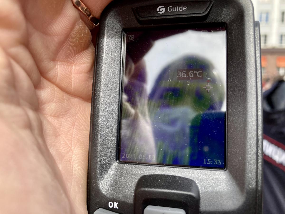 Температура у гостей Парада измерялась с помощью современных тепловизоров. Прибор позволяет проводить термометрию в потоке, не создавая очереди, и не допустить гостей с повышенной температурой (одним из признаков инфекционного заболевания) в зрительский сектор.