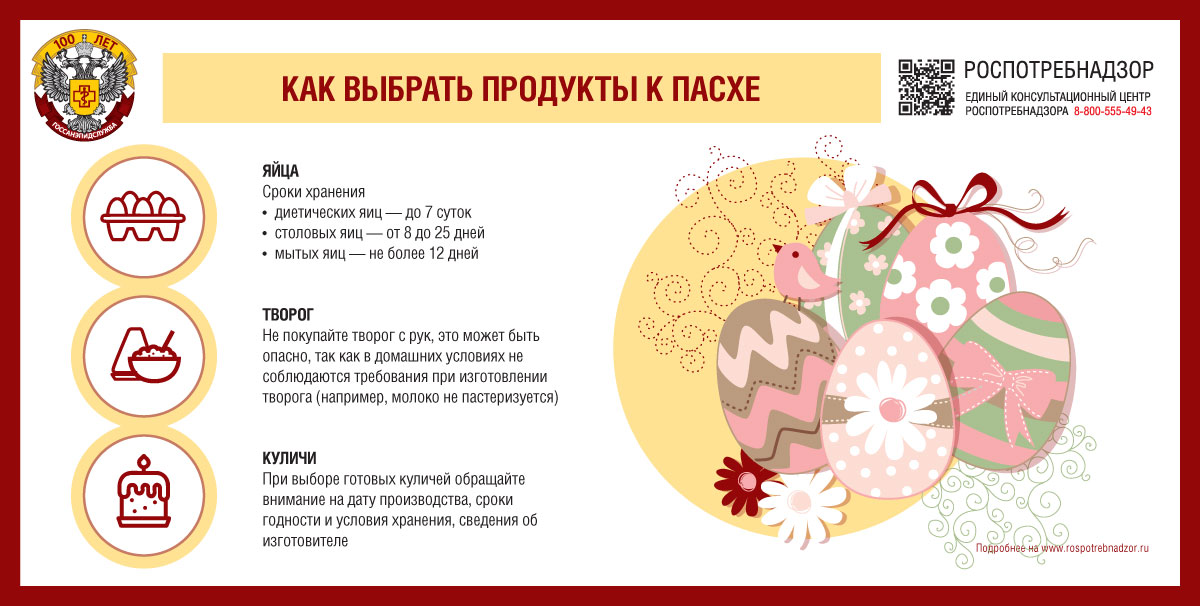 В преддверии праздника Пасхи Роспотребнадзор предлагает воспользоваться рекомендациями по выбору продуктов к праздничному столу.