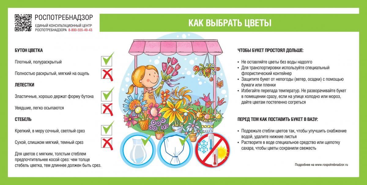 Роспотребнадзор напоминает о правилах выбора живых цветов. Живые цветы – непременный атрибут любого праздника, который создает нужное настроение. Чтобы букет дольше оставался свежим, важно учитывать свежесть каждого цветка и правильные условия хранения.