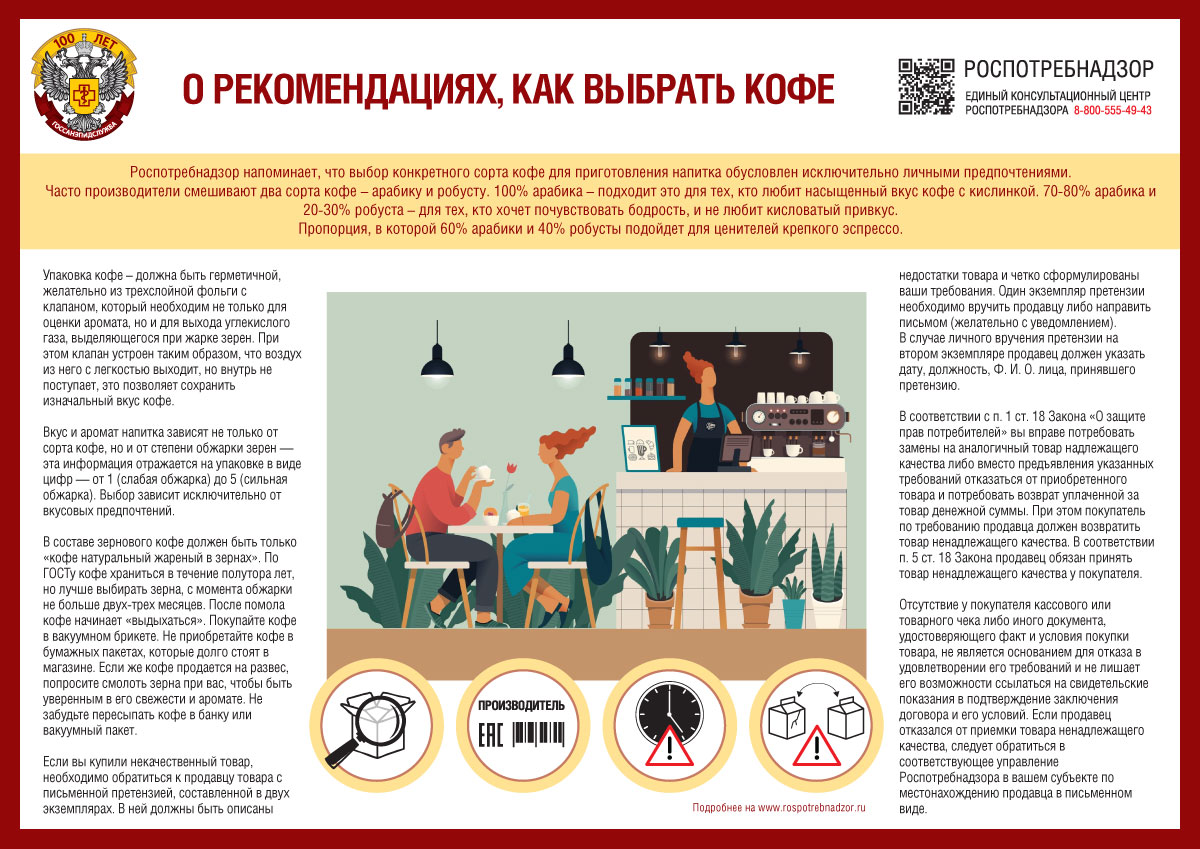 Роспотребнадзор напоминает, что выбор конкретного сорта кофе для приготовления напитка обусловлен исключительно личными предпочтениями. Часто производители смешивают два сорта кофе – арабику и робусту. 100% арабика – подходит это для тех, кто любит насыщенный вкус кофе с кислинкой. 70-80% арабика и 20-30% робуста – для тех, кто хочет почувствовать бодрость и не любит кисловатый привкус. Пропорция, в которой 60% арабики и 40% робусты подойдет для ценителей крепкого эспрессо.
