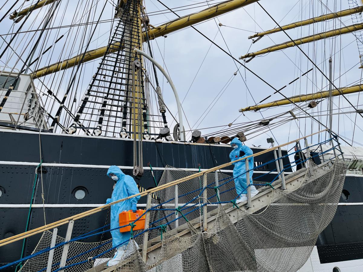 Специалисты Управления Роспотребнадзора провели учебно-тренировочное занятие на барке «Крузенштерн». Цель – отработка практических навыков при проведении профилактических (противоэпидемических) мероприятий в случае выявления больного с подозрением на опасные инфекционные болезни.
