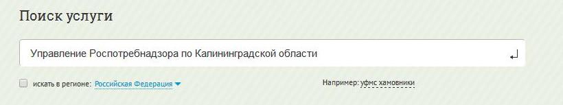 Выберите в поисковой строке ведомство «Управление Роспотребнадзора по Калининградской области».
