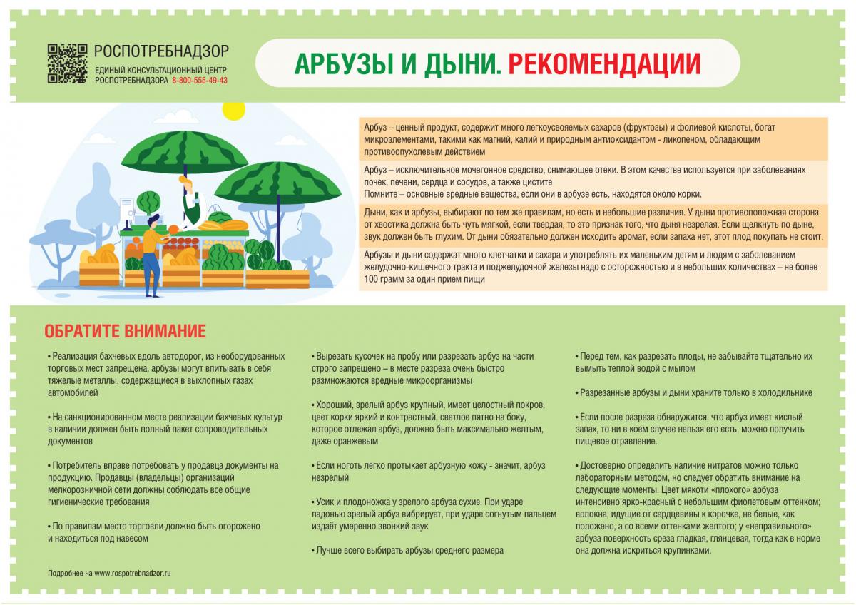 На санкционированном месте реализации бахчевых культур в наличии должен быть полный пакет сопроводительных документов, подтверждающий качество и безопасность бахчевых культур (сертификат или декларация о соответствии, удостоверение о качестве, выданное организацией, вырастившей арбузы); у продавца должна быть на рабочем месте информация о юридическом лице, реализующем арбузы, вывеска с указанием времени работы, весы, продажа бахчевых культур осуществляется при наличии ценников с информацией о наименовании товара и его стоимости.