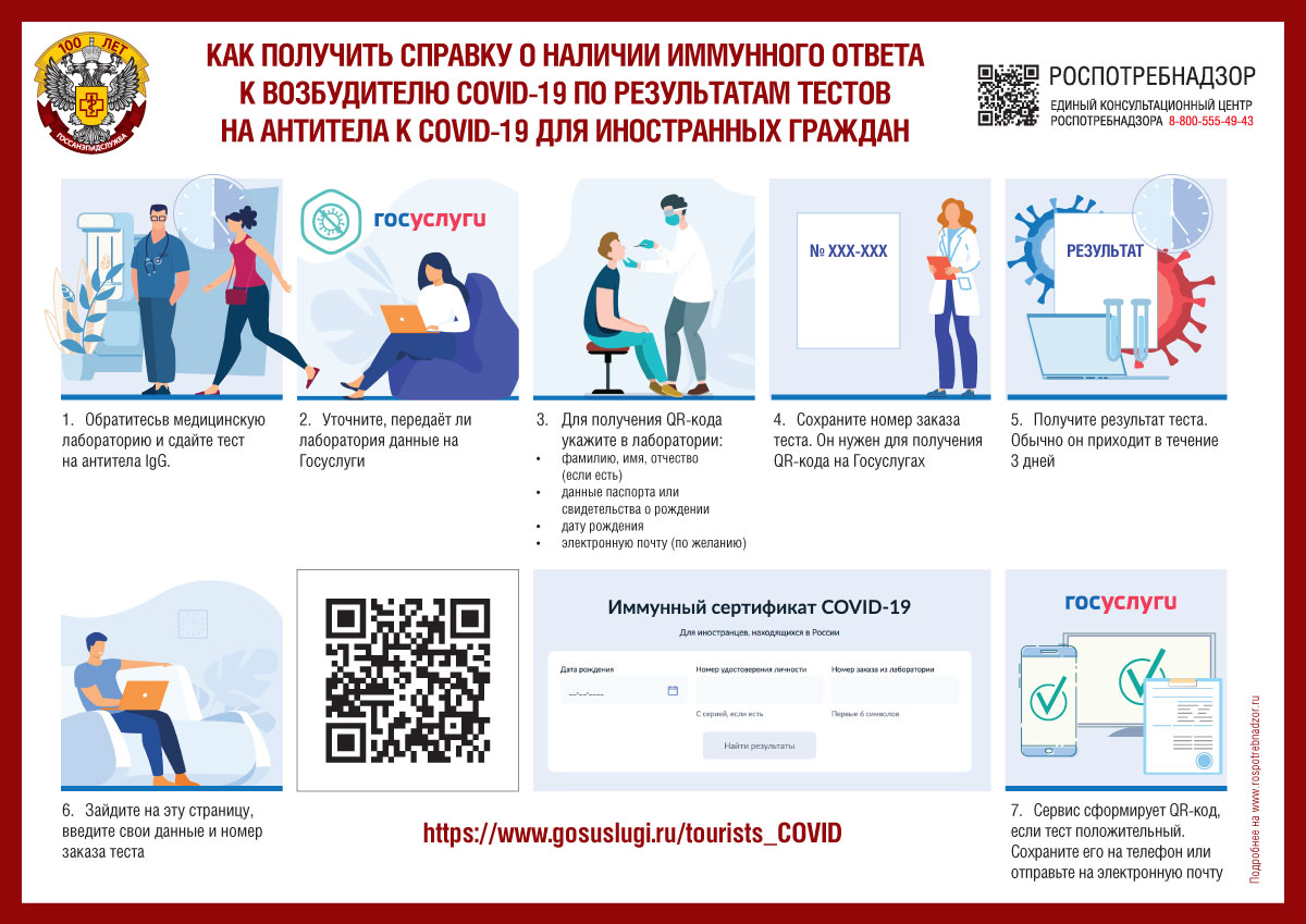 Об алгоритме получения справки о наличии антител к возбудителю новой коронавирусной инфекции (COVID-19) для иностранных граждан